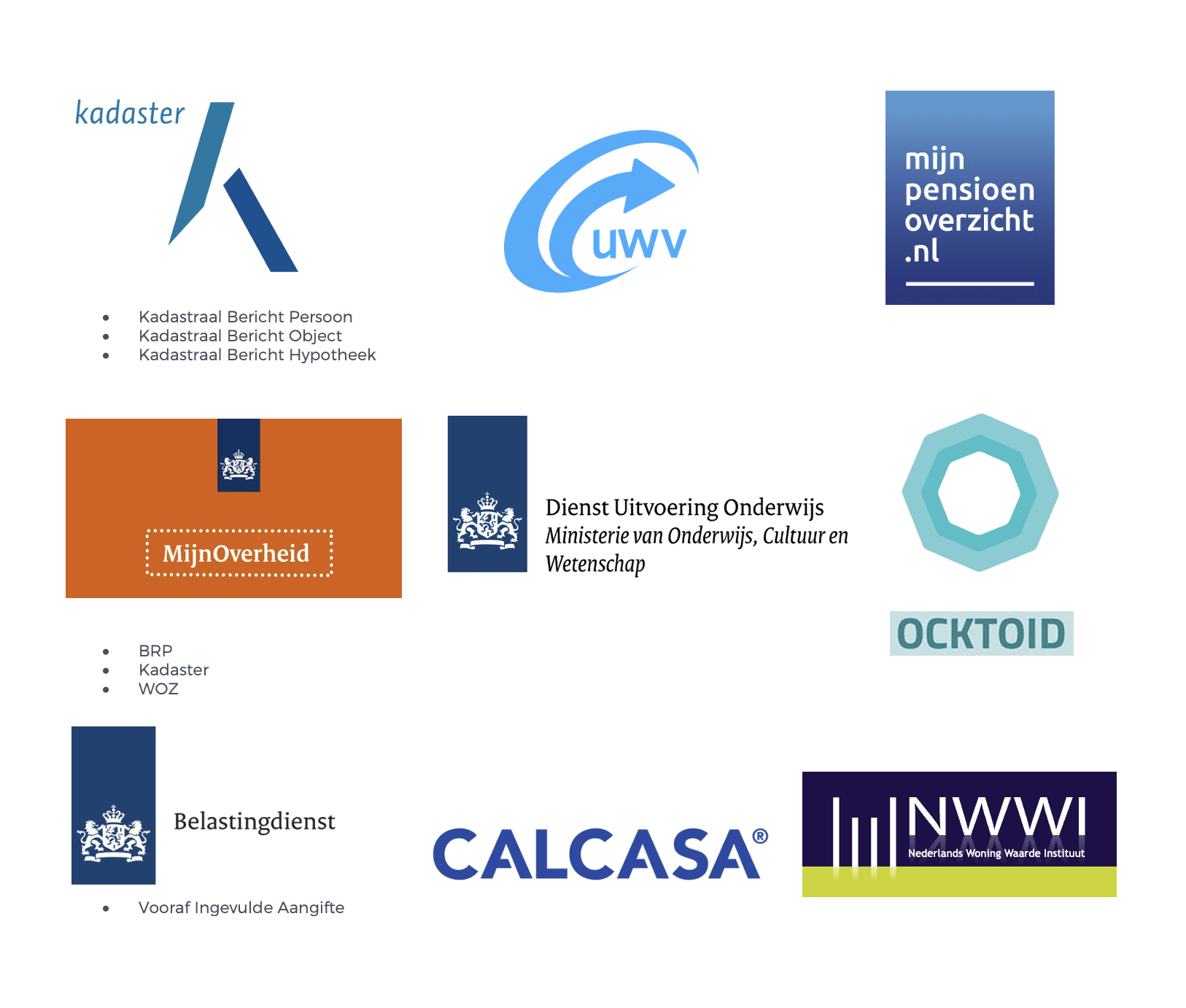 Hiernaast staan de bronnen die via HDN beschikbaar zijn. Als de door jou gekozen geldverstrekker deze bronnen accepteert, vervangen zij stukken die je dan niet meer hoeft aan te leveren.